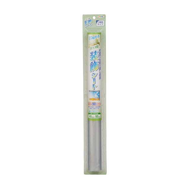 ラクラク貼れるガラス用装飾シート 特長 ● 窓ガラスに貼るだけでお部屋の雰囲気が変わります。 ● 紫外線を約90%カットしますので、室内の色あせ・変色を防止します。 ● 吸着タイプなので、簡単に貼れて簡単にはがせ何度でも貼り直しができます。 ● 粘着剤を使用していませんので、はがした時にガラス面に粘着剤が残る心配がありません。 用途 ●窓ガラスに 【貼れる面】 透明ガラスの平らな面、くもりガラスの平らな面、型板ガラスの平らな面 【貼れない面や場所】 網入りガラス、特殊ガラス(ペアガラス、合わせガラスなど)、くもりガラスのくもり面、型板ガラスの凹凸面、浴室内などの高温多湿の場所、水が直接かかる場所、60℃以上の熱がかかる場所、自動車の窓ガラス、屋外 材質/成分 シート:塩化ビニル 裏面フィルム:ポリエステル 注意事項 ●生産ロットにより多少色や外観の差が生じる場合があります。 ●外気温が10℃以下または35℃以上の場合、仕上がりが悪くなったり、接着しないことがあります。夏場又は冬場での作業時には、貼る時、及び貼り終えてからしばらくの間、部屋の温度を10℃〜35℃に調整してください。 ●網入りガラスや特殊ガラスに貼ると、ガラスが割れることがあります。 ●ヒビ割れたガラスには、使用しないでください。 ●窓ガラスに貼る場合には、室内側に貼ってください。 ●ガラス飛散防止効果はありません。 ●軟質塩化ビニルですので温度変化により数ミリ程度シートが伸縮することがあります。 ●特性上、シートを強く引っ張るとシートが伸びて戻らなくなりますので注意してください。 ●本品に他のプラスチック製品を接触させないでください。劣化の原因になります。 ●貼りつけ作業中、及び貼りつけ後は換気を行ってください。
