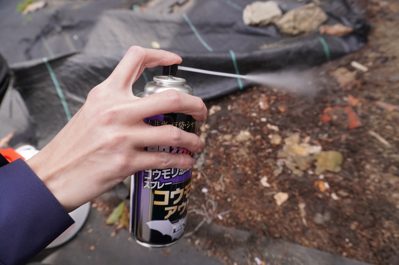 天井裏・戸袋などコウモリの生息する場所または侵入の恐れがある場所に、本品が十分行き渡るように噴霧します。