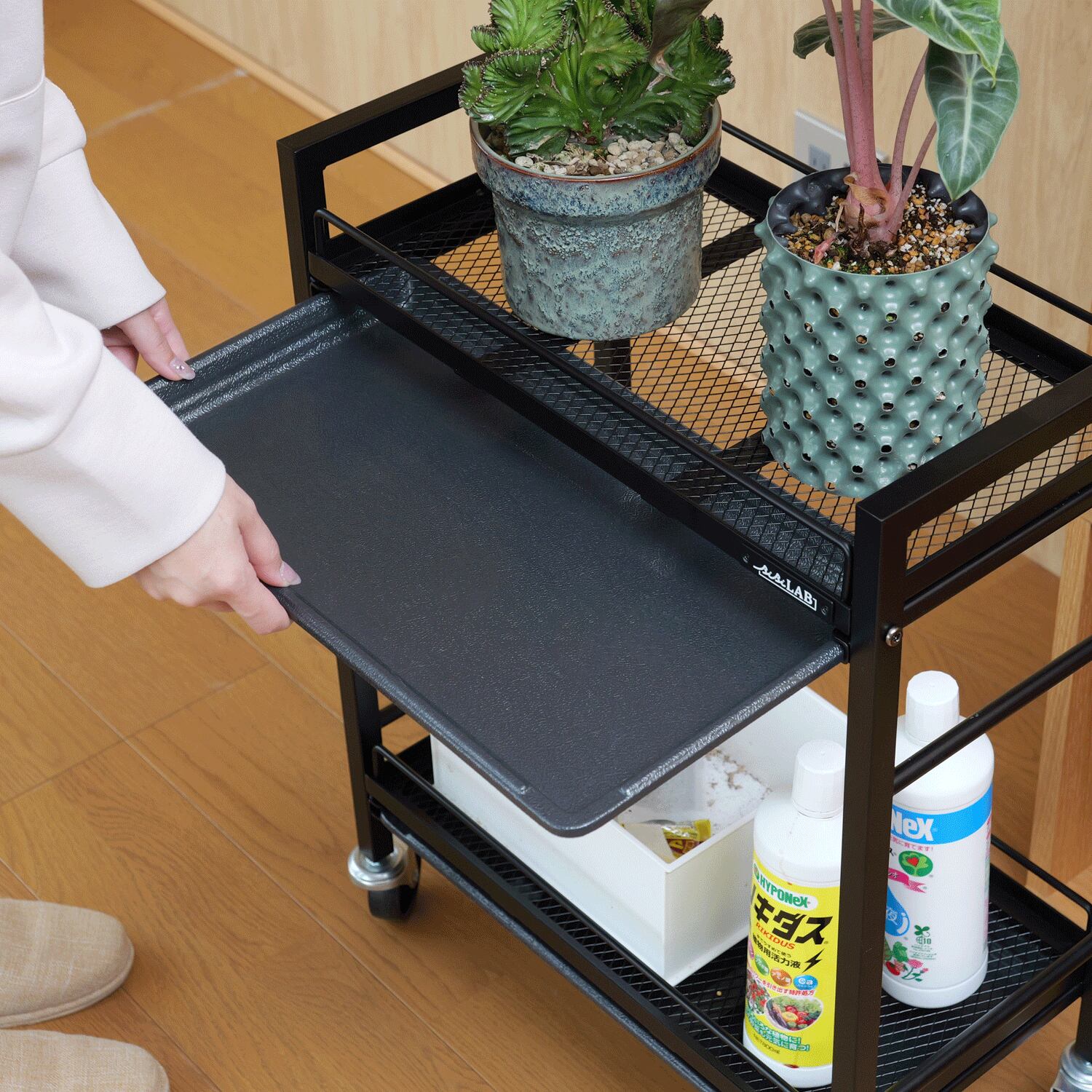 植物のそばにワゴンを運んで、水受けトレーの上に植木鉢を乗せて水やりすれば、トレーの水を捨てるだけでOK