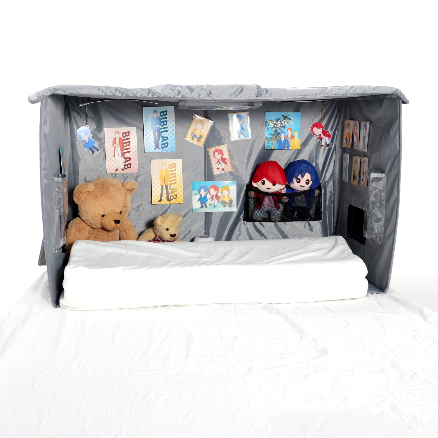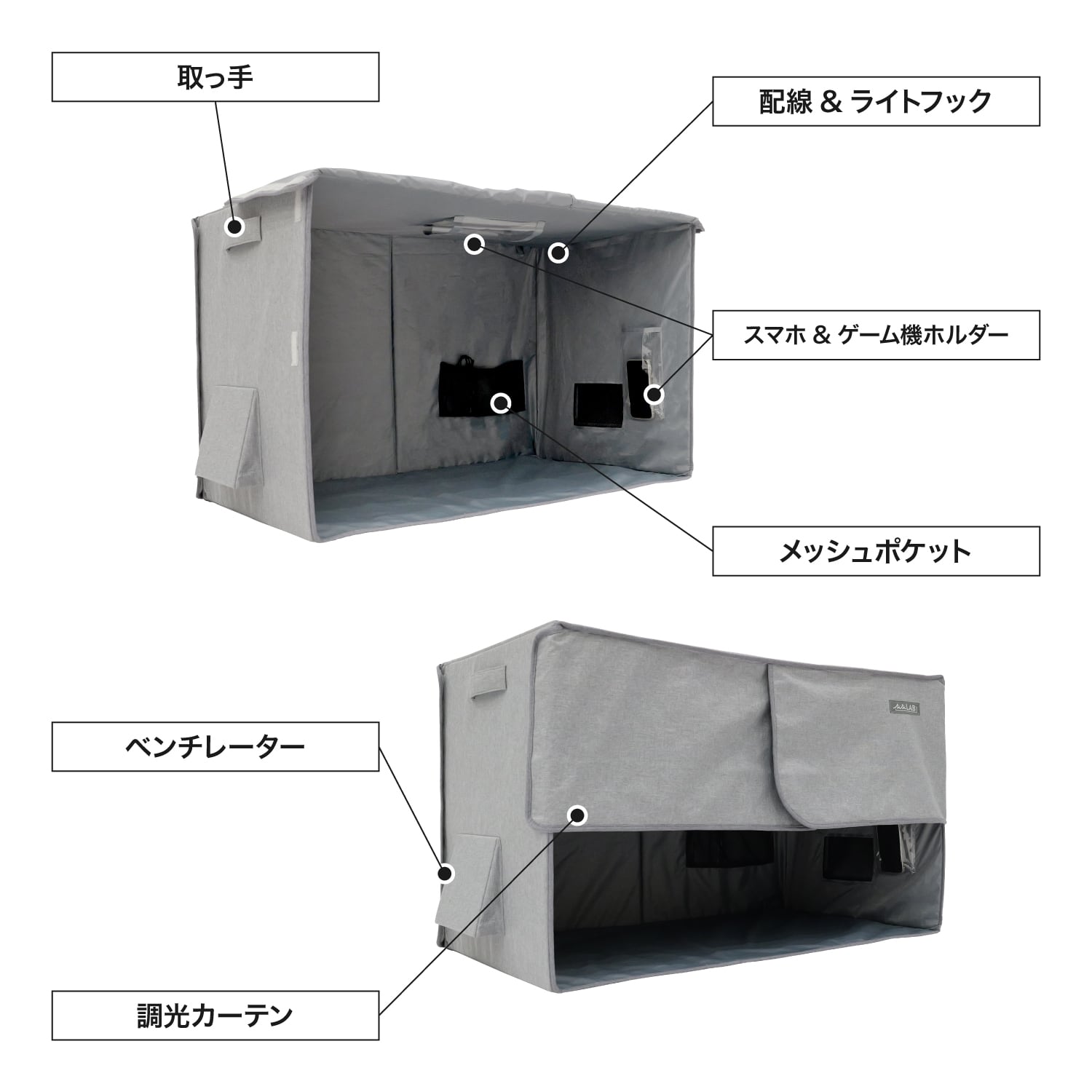 ※テント内の換気のため、カーテン下部を開放する仕様となっております。寝具などで隙間を埋めきらないようご注意ください。