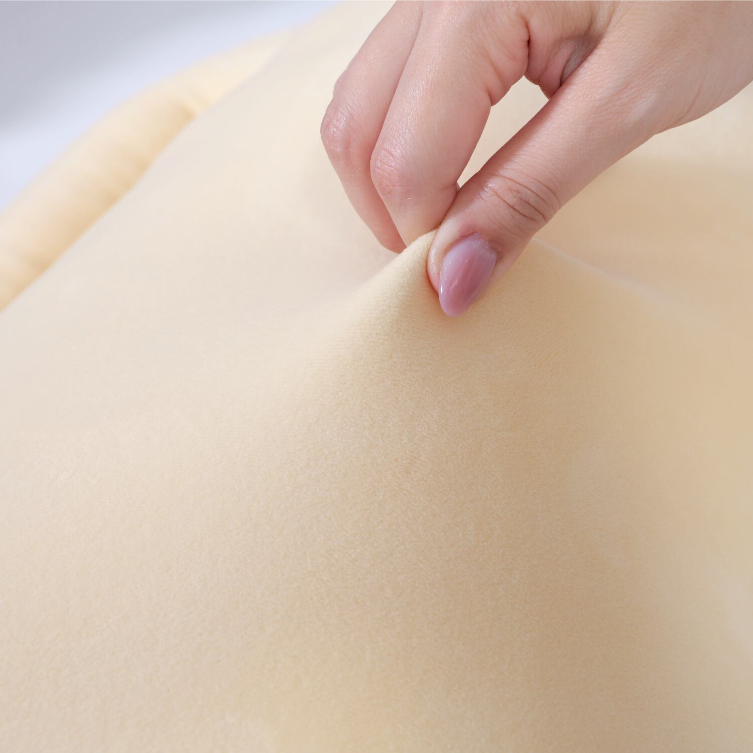ぬいぐるみにも使われる粒綿をたっぷり充填し、弾力性のある抱き心地です。