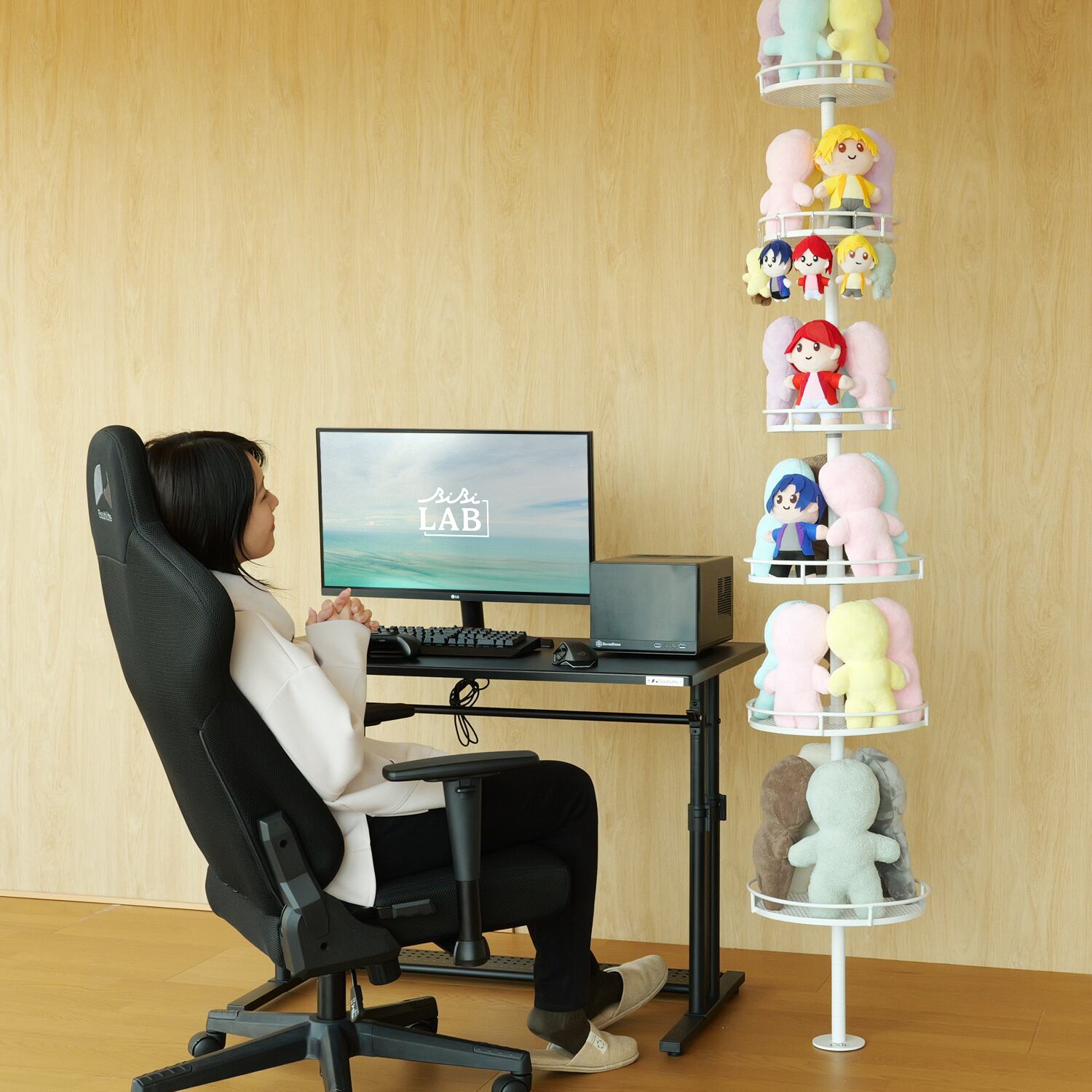 ●円盤型のぬいぐるみ専用棚で360°全方位からぬいぐるみを愛でることができます。