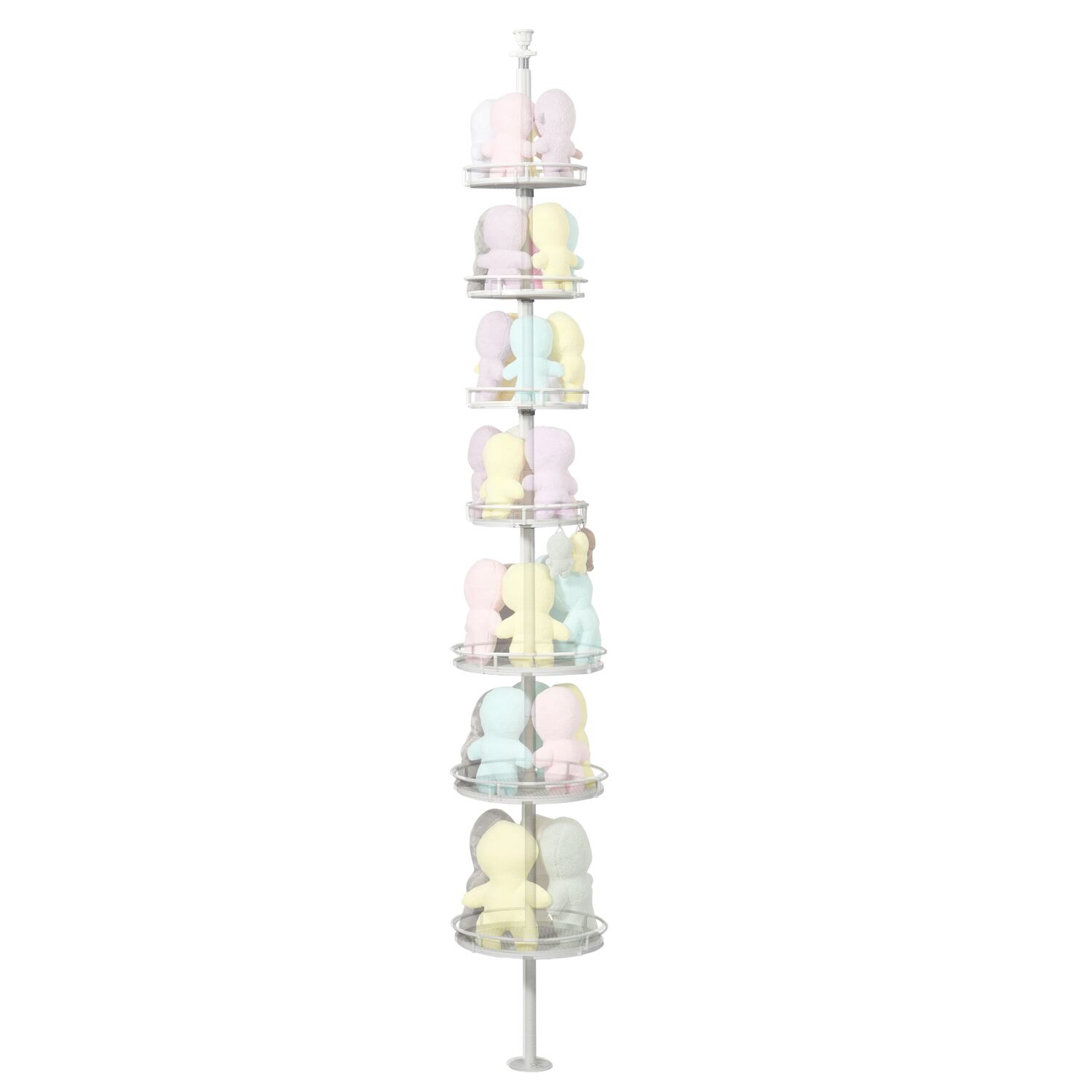 床から天井までぬいぐるみをディスプレイできるつっぱり式の収納棚