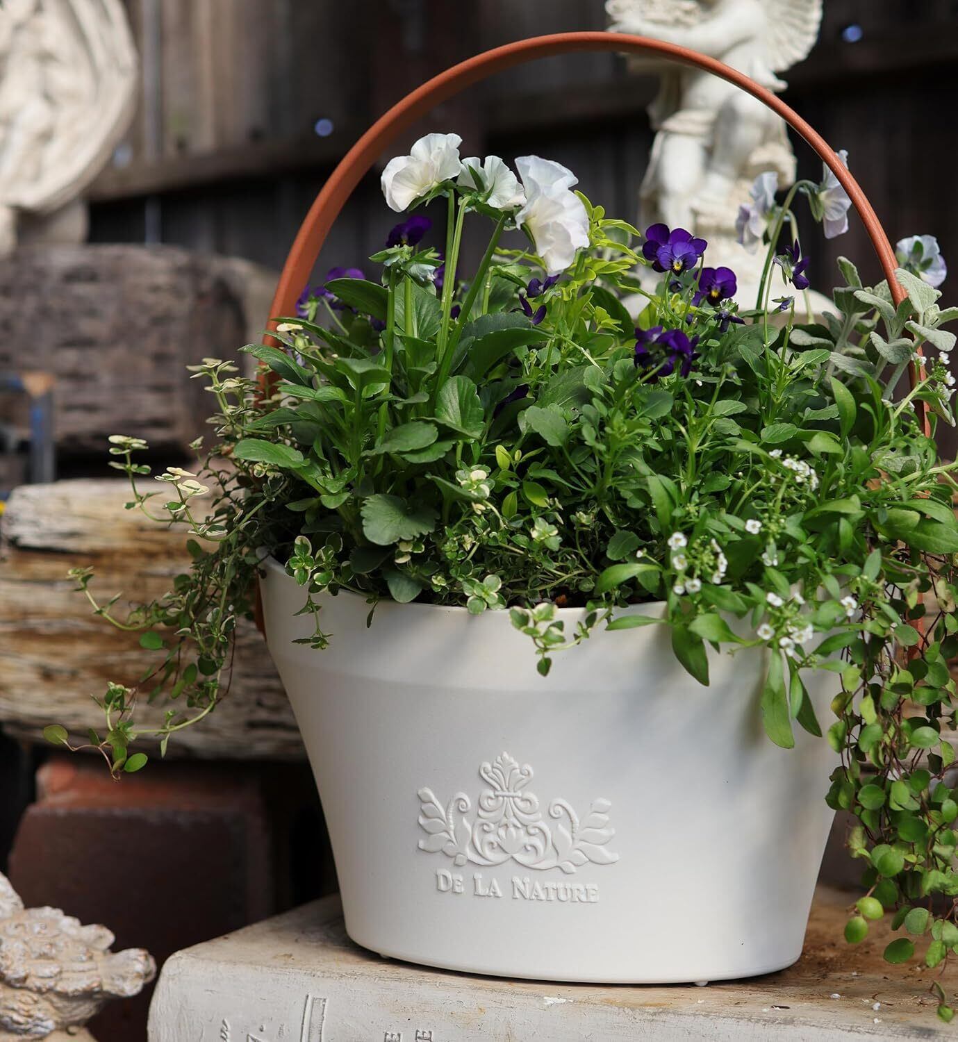 草花の寄せ植えがエレガントでスタイリッシュに飾れるデザイン