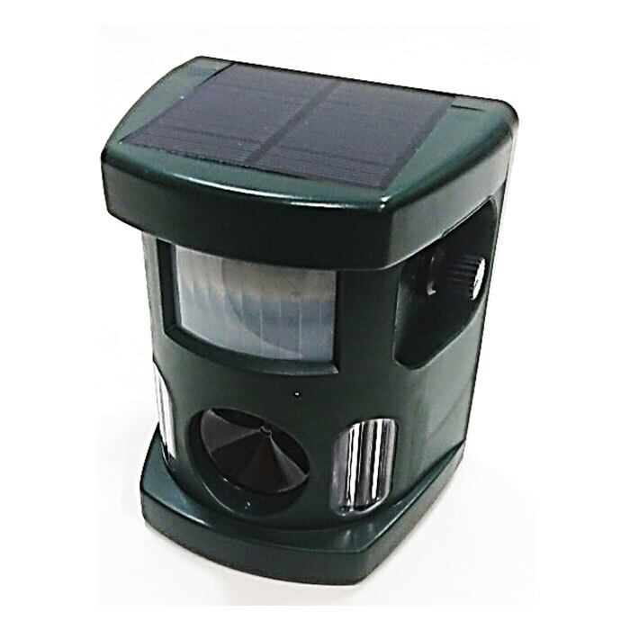 害獣が近づくと光と超音波が自動で作動して追い払う。