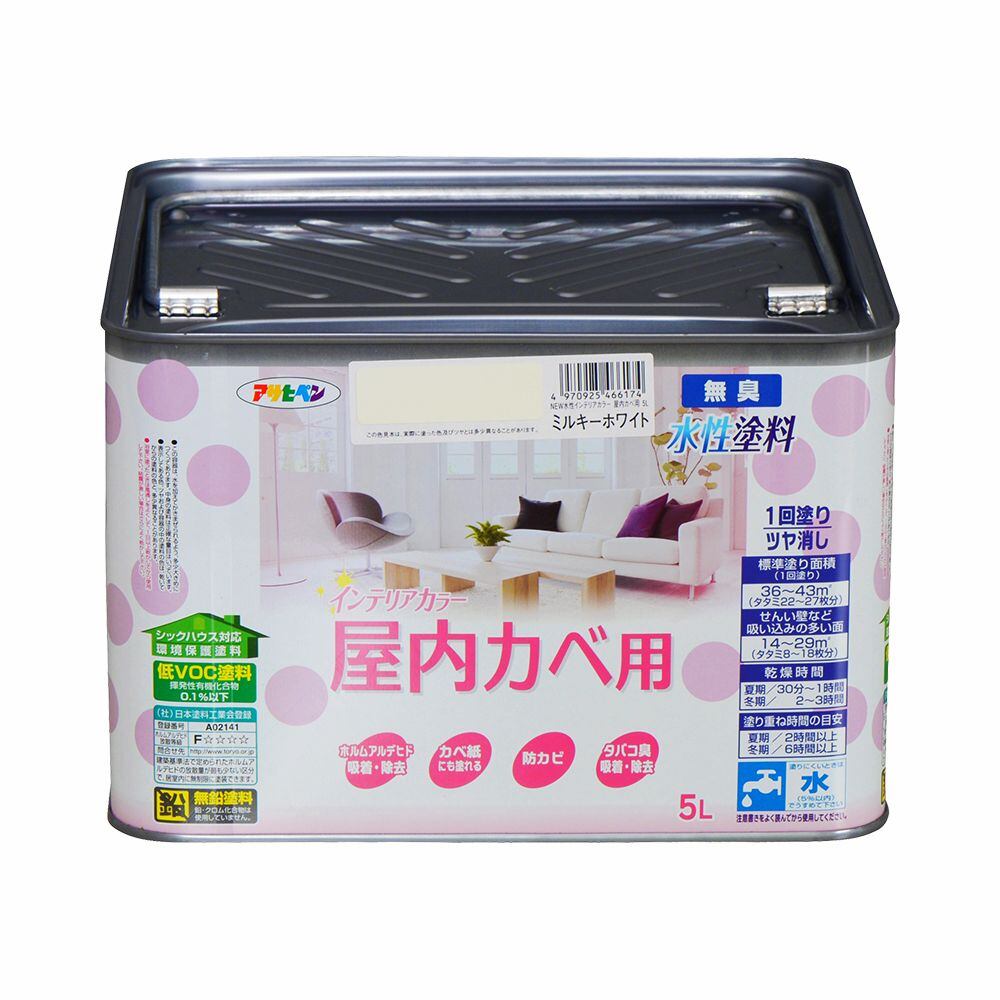 アサヒペン NEW水性インテリアカラー屋内カベ 5L ミルキーホワイト