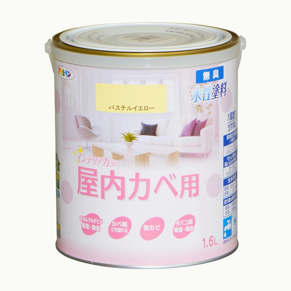 アサヒペン NEW水性インテリアカラー屋内カベ 1.6L パステルイエロー