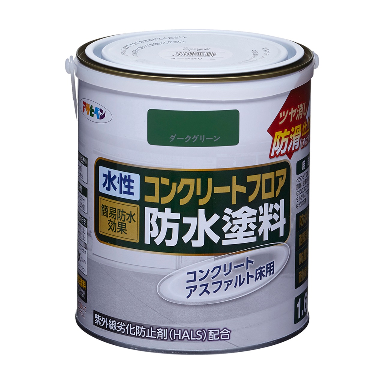アサヒペン 水性コンクリートフロア防水塗料 1.6L ダークグリーン