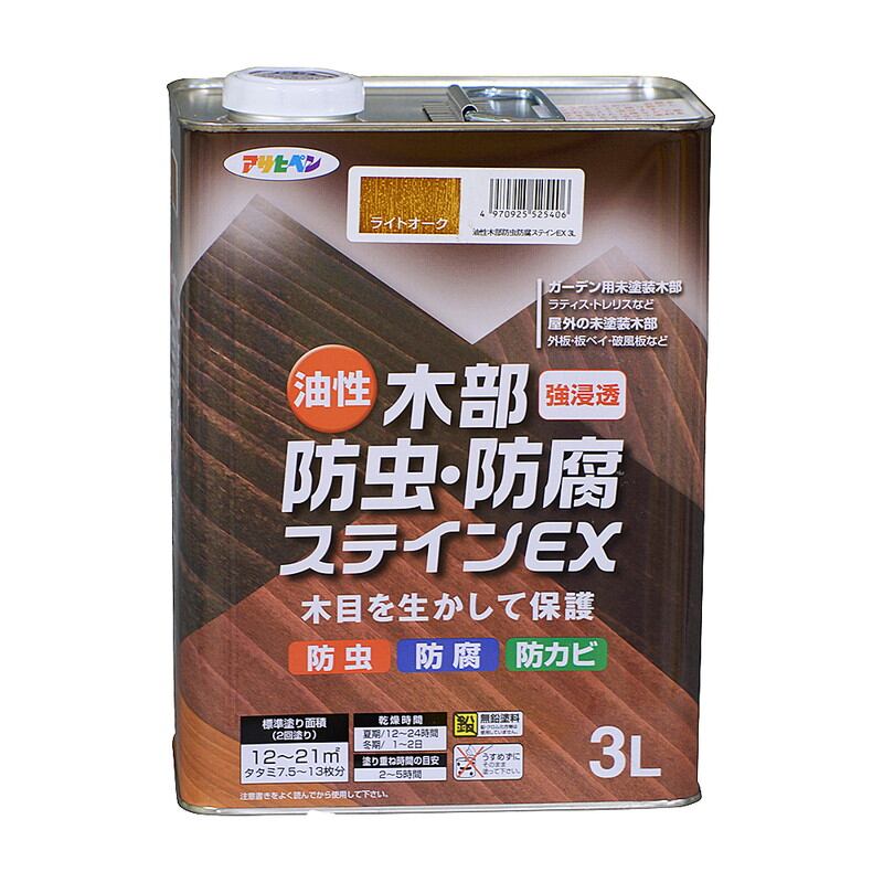アサヒペン 油性木部防虫・防腐ステインEX 3L ライトオーク
