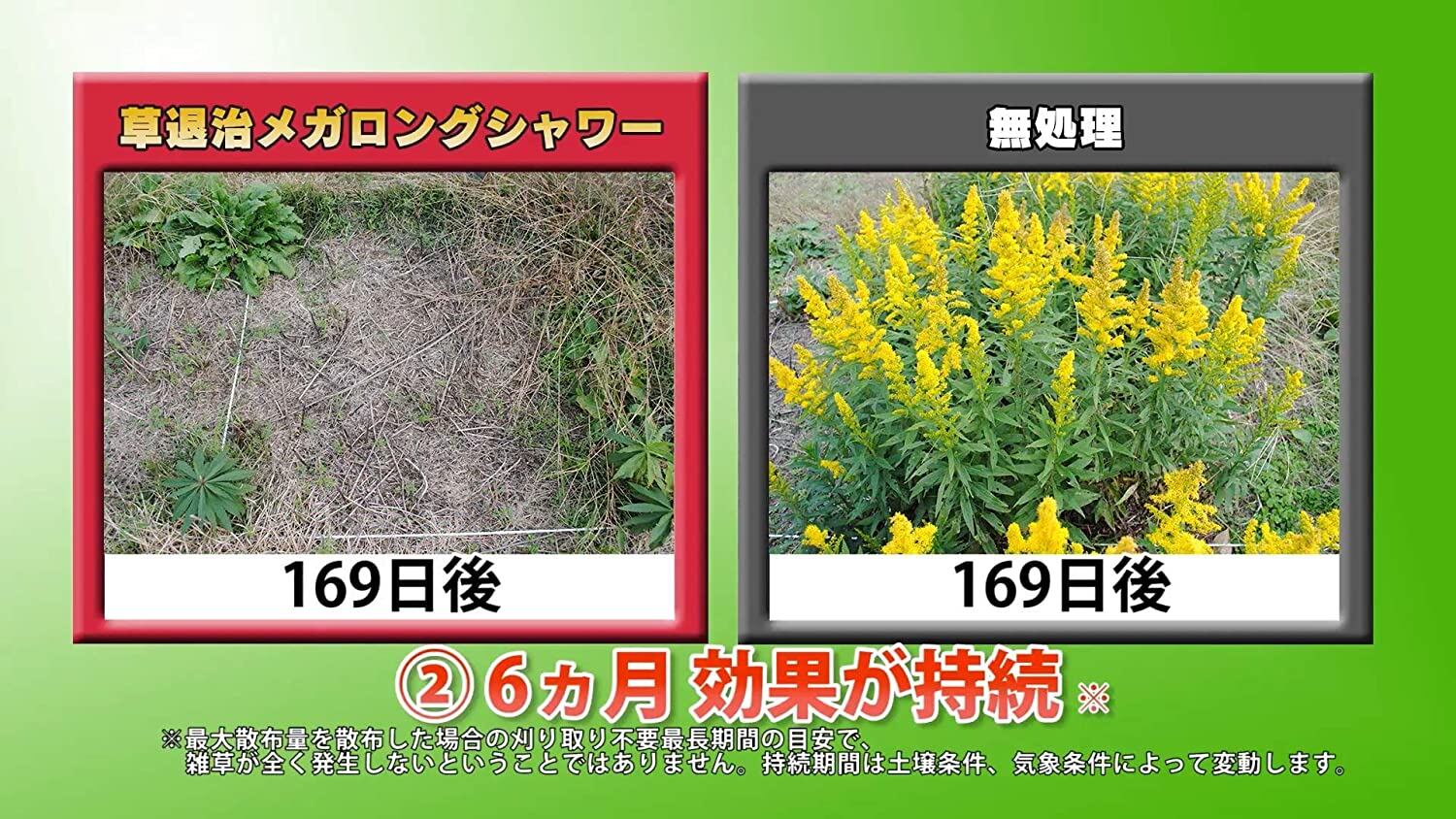 本剤は茎葉に散布するだけでなく、土壌にも散布することで有効成分が留まり効果が持続します。