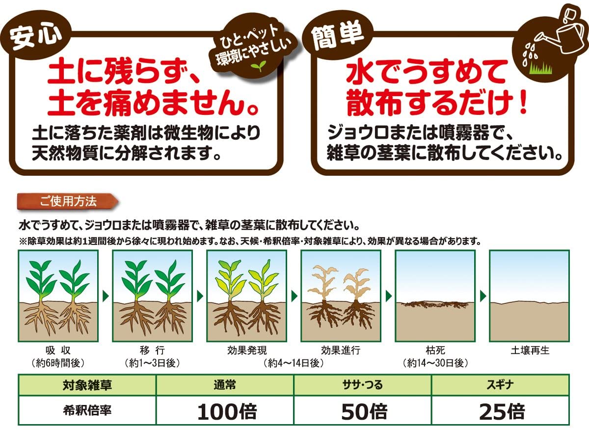●希釈倍率:通常100倍、ササつる50倍、スギナ25倍