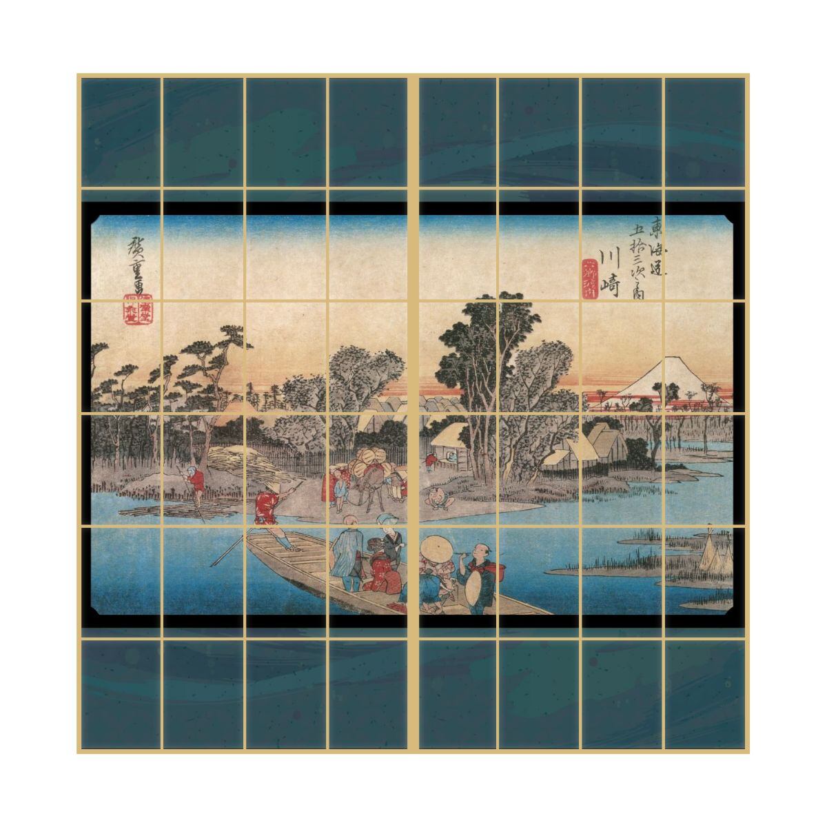 浮世絵 障子紙 東海道五十三次 歌川広重 川崎宿 六郷渡舟 2枚1組 のりで貼るタイプ 幅91cm×長さ182cm しょうじ紙 アサヒペン JTB-003S【デジタルプリント商品】