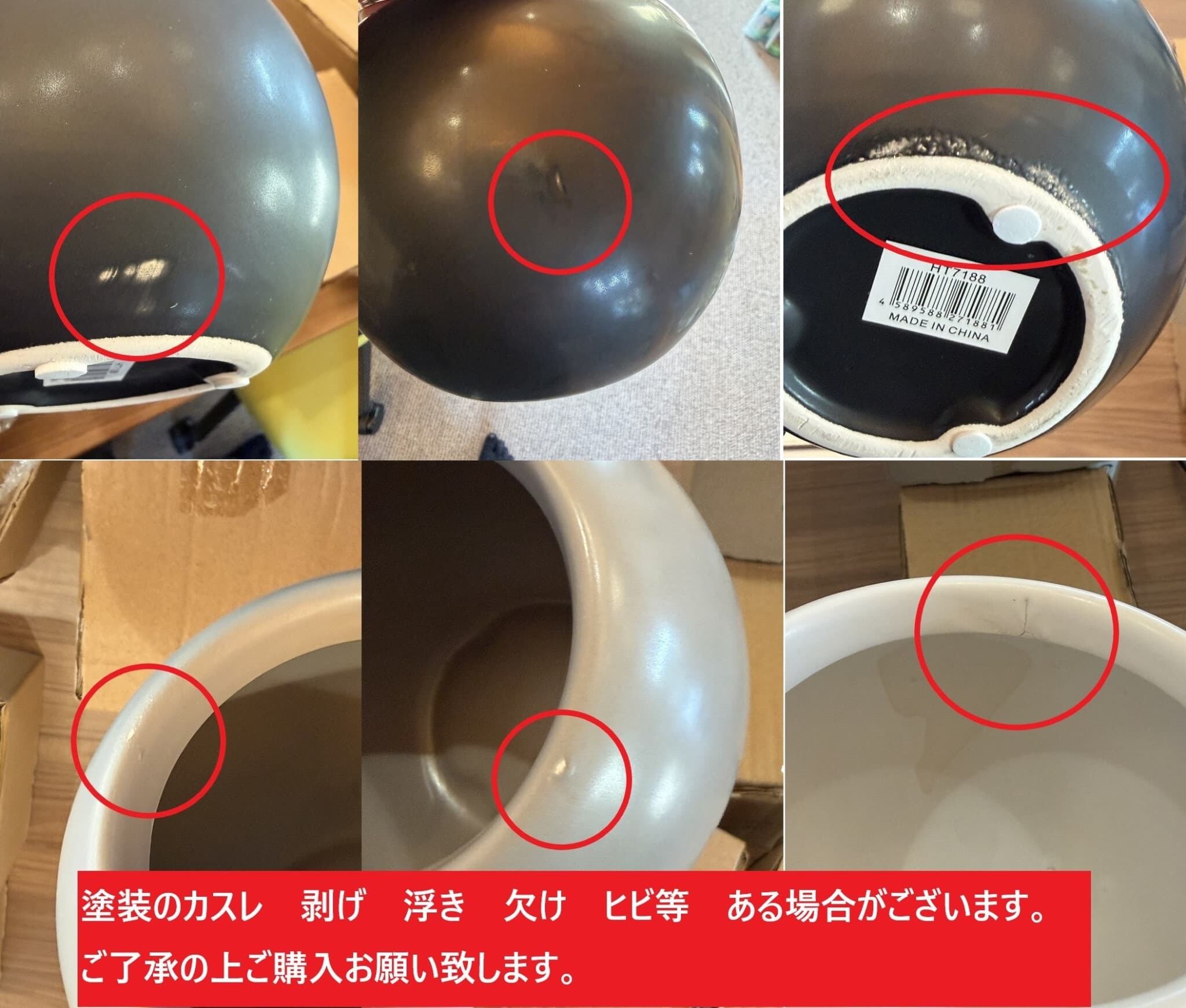また、製造・管理過程でできる、塗装の掠れ、剥げ、浮き、微細なヒビや欠け、傷などが見られる場合がございます。