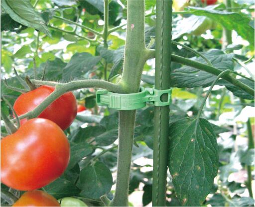 茎を紐で結んだり、誘引専用の器具がいらず、1本の茎に通常2?3箇所留めるだけで楽々誘引!